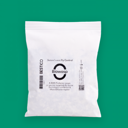 Biowasp contient 2 espèces de mini-guêpes (Spalangia cameroni et Muscidifurax sp) parasitoïdes des pupes de mouches. Elles parasitent une grande variété de mouches et permettent un contrôle total des mouches en élevage. Elles peuvent être utilisées dans tous les environnements et dans tous les élevages pour le contrôle des mouches. Biowasp est utilisé de préférence sur les aires paillées.