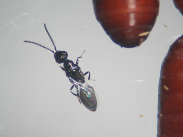 Les guêpes de type Muscidifurax sp et Spalangia Cameroni , contenues dans Biowasp vont pondre leurs œufs (1 à 5 selon l’espèce) à l’intérieur de la pupe. Elles parasitent toutes les espèces que l’on peut retrouver sur l’élevage : mouches domestiques, stomoxes, mouche d’automne etc etc . Une fois les œufs déposés, ce sont des mini guêpes qui sortiront de la pupe (on imagine ce qu’elles ont fait de la future mouche …) et renouveler ainsi le « cheptel » de mini guêpes sur l’exploitation.